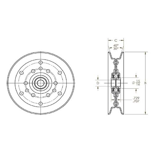 • V-belt idlers are available with single-row bearings with a bore size to clear 1/2" and 5/8" bolts.