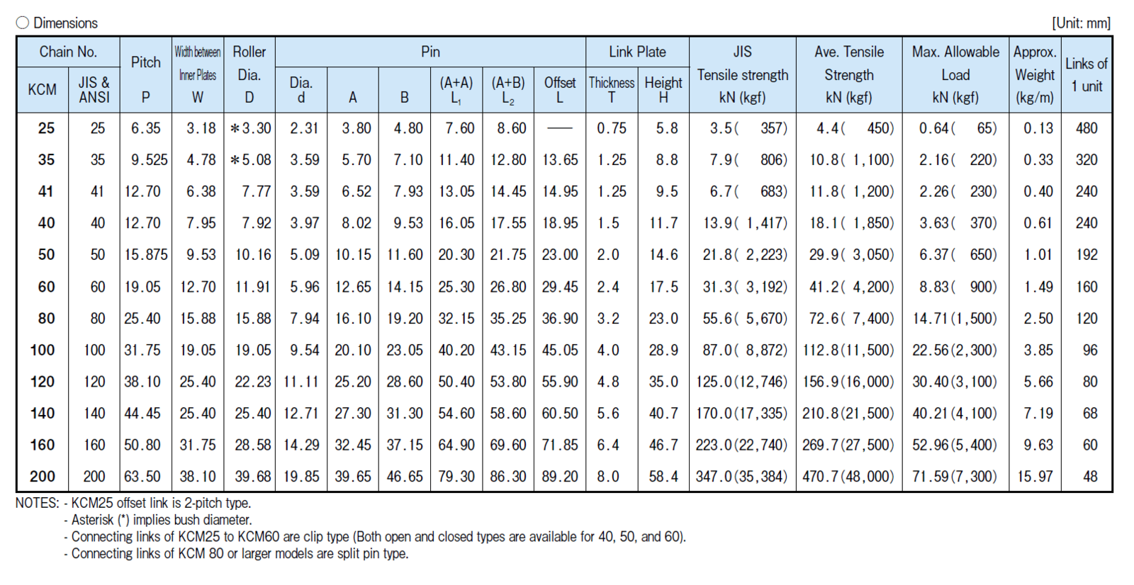 - Link Plate Height (H) 8.8 mm