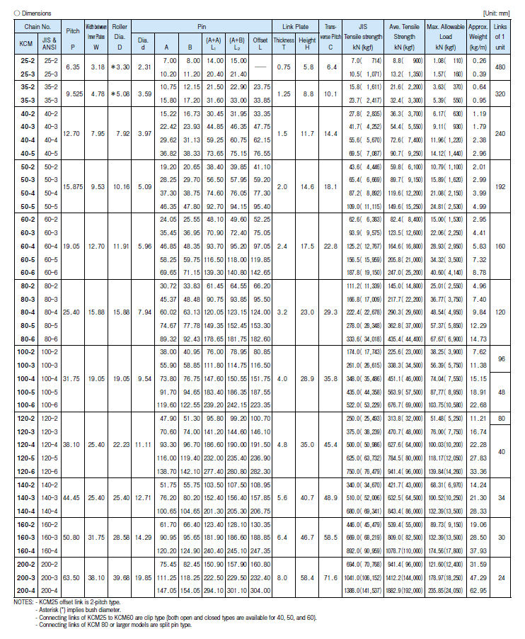 KCM Roller Drive Chain