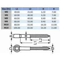 M6 x 40 316 Stainless Steel Lag Eye Screw - Box of 10