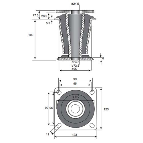 Mackay M137101 Recessed Flange Isolator Type 70 - 1000kg Load