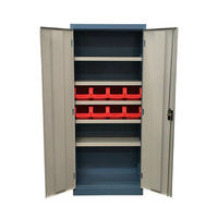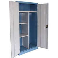 Storage cabinets and cupboards are closed storage solutions that hide and protect their content from the environment. They are commonly constructed with multiple shelves or drawers in a housing fitted with a hinged door. Some storage cabinets have wheels that allow maneuverability within the workspace. These storage solutions store, protect, and organize tools, parts, devices, or goods in industrial, commercial, automotive, and manufacturing industries.