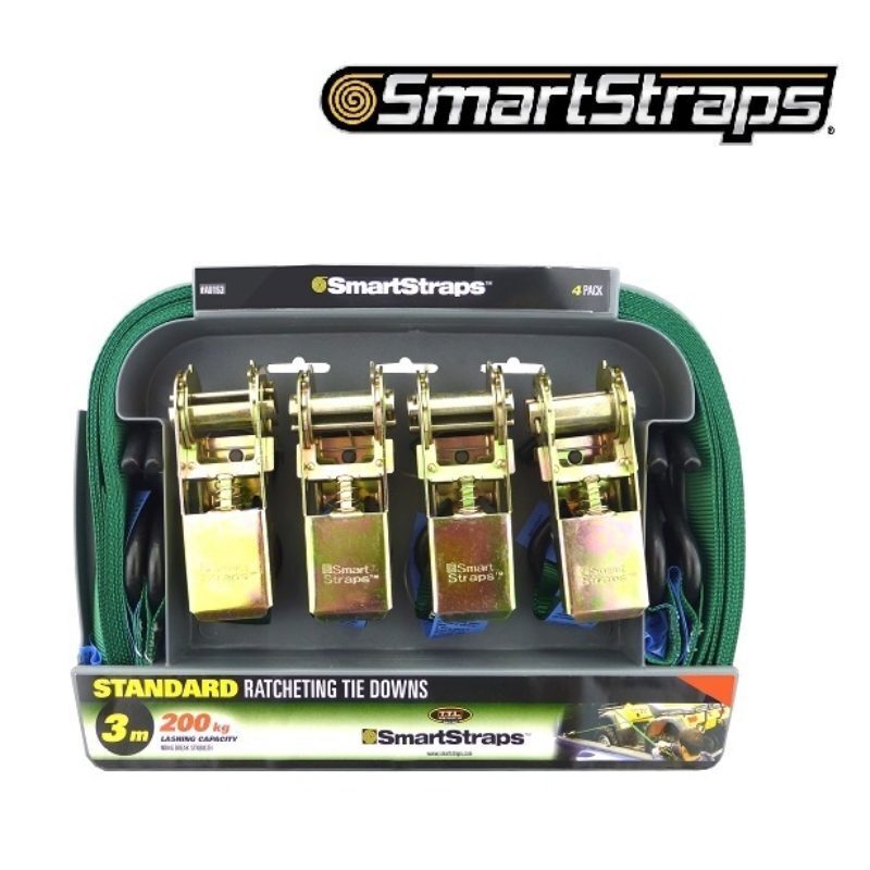 SmartStraps Ratchet Tie Down Strap Green 3m - 4/Pack