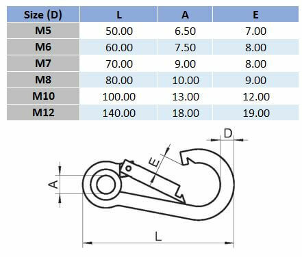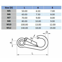 M5 316 Stainless Steel Spring Hook With Eye - Box of 10