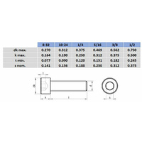 1/4 x 3/8" UNC 316 Stainless Steel Hex Socket Cap Head Screw - Box of 100