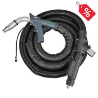 MIG torches or MIG guns consist of a handle, neck, and nozzle used to control the release of shielding gas, welding wire, and electric current in a metal inert gas welding process. Since the welding wire is automatically released, MIG welding produces a faster and cleaner weld than traditional stick welding. AIMS Industrial offers a wide selection of torches for your MIG welding requirements.